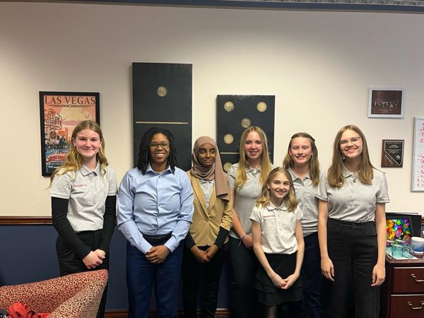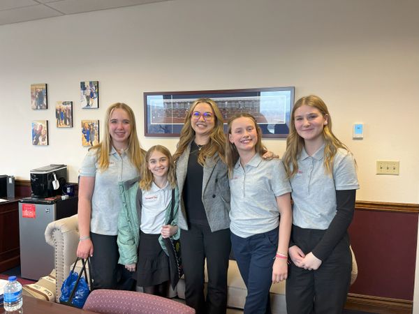 Emily met with her lawmakers during the Grassroot Girls Day at the Legislature and shared her concerns on mental health and school violence prevention. As part of our curriculum, the Grassroot Girls are asked to develop leave behinds to leave with their lawmakers after their meetings. Emily spent time researching her issue and supporting her ask with data, as you can see illustrated in the backdrop of her photo.